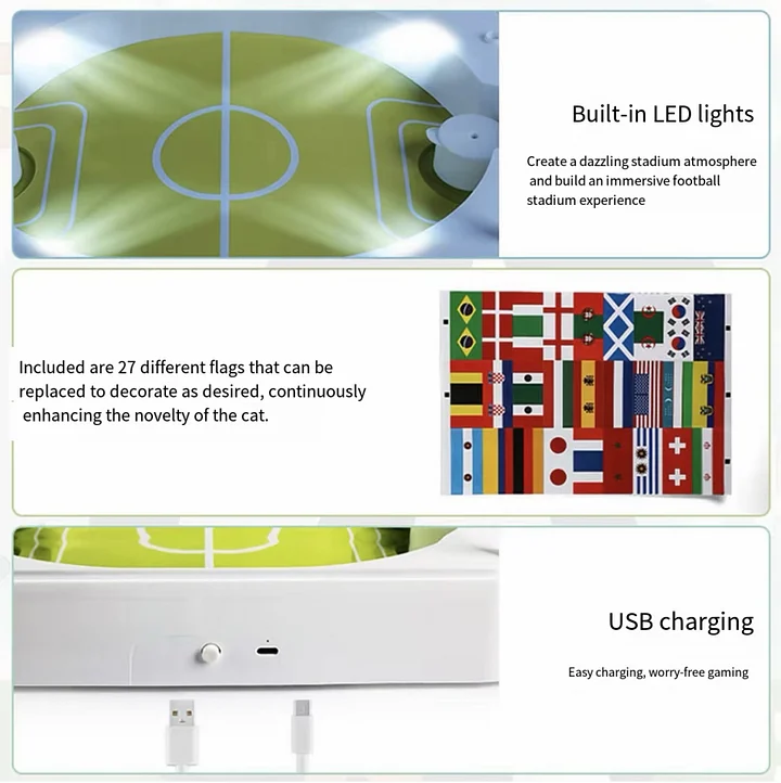Bright LED lights create an exciting stadium atmosphere, boosting visual engagement and making playtime fun both day and night for your curious kitty.