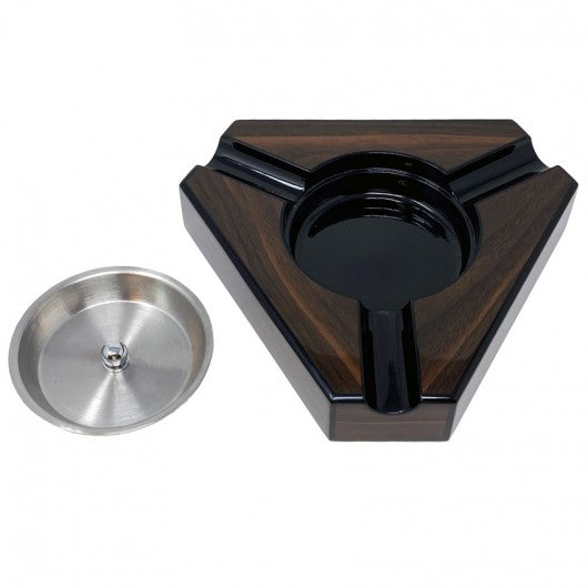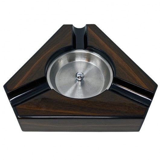 - 3 Cigar Dark Maple & Black Lacquer Triangular Ashtray