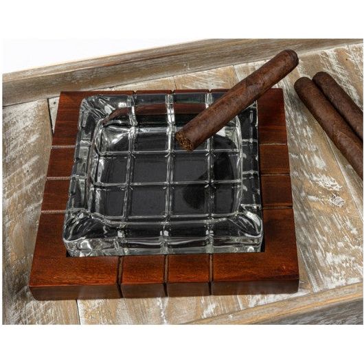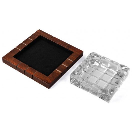 Crystal Ashtray on Wood Base
